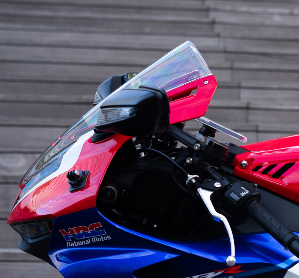 The Shapeheart BOOST half-handlebar mount integrates perfectly with the CBR500R thanks to its fastening system in the steering column hole.