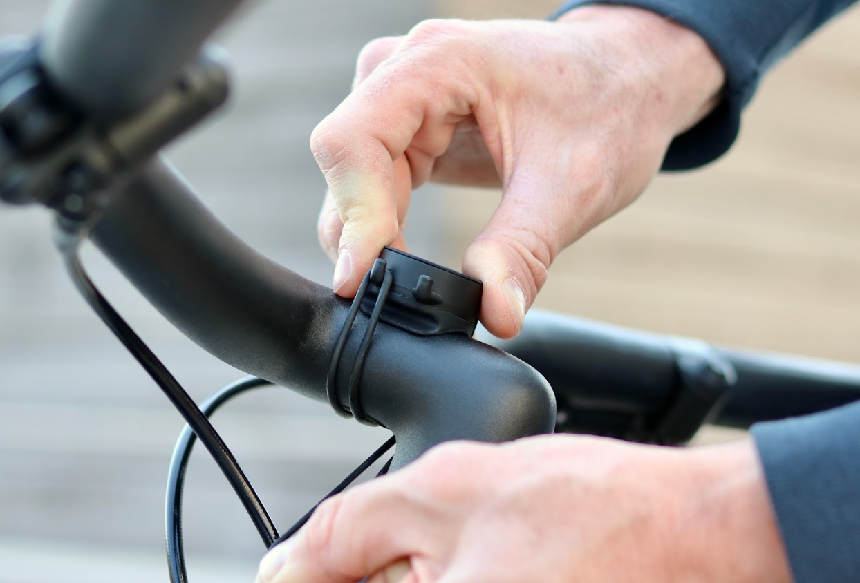 - Place the dock on the handlebar or stem, after first attaching the strap to 2 hooks.