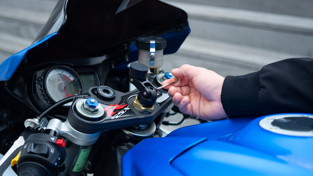 Step 1 : Screw your bracket into the hole in the steering column of your sport motorcycle.