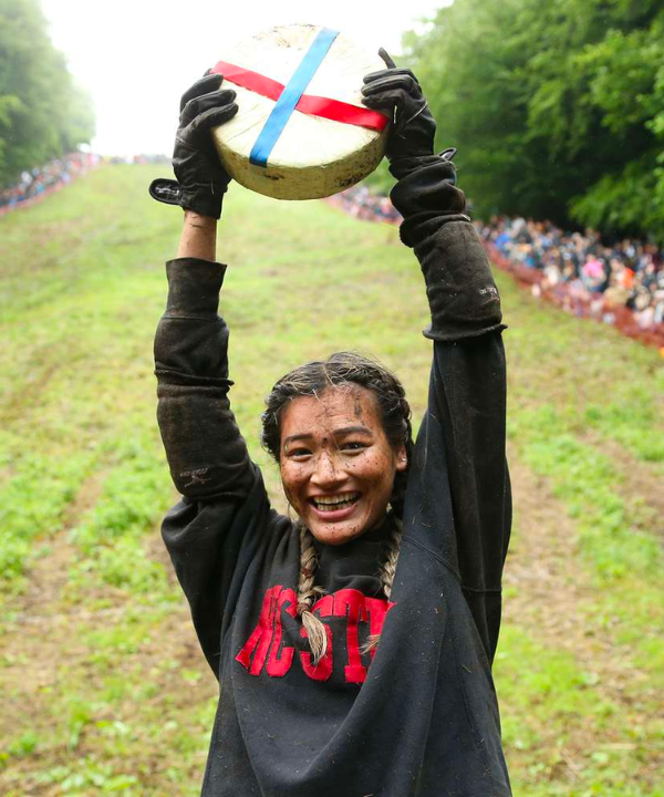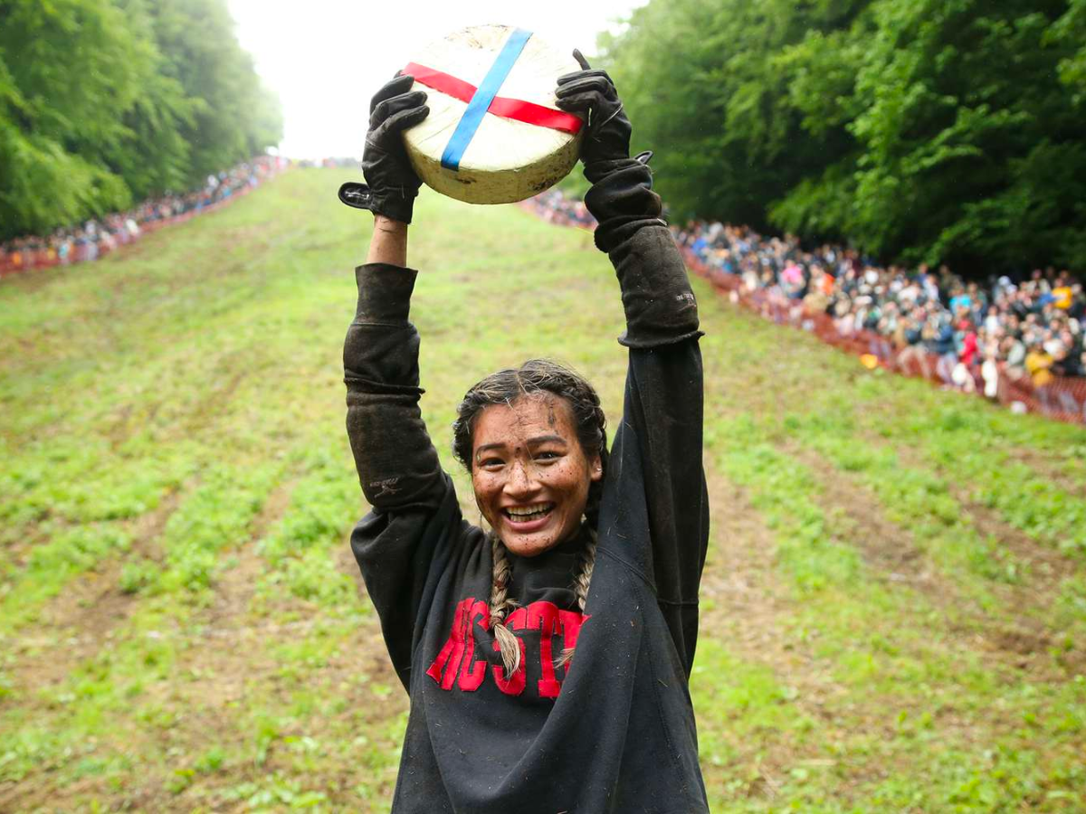 Chaque année, en Angleterre, des coureurs intrépides se lancent dans le Gloucestershire Cheese Rolling. Le principe est simple : les participants poursuivent un fromage, lancé à toute vitesse au lancement de la course, dévalant une colline escarpée. Le premier à atteindre le fromage remporte le prix, mais attention aux chutes et aux bosses !