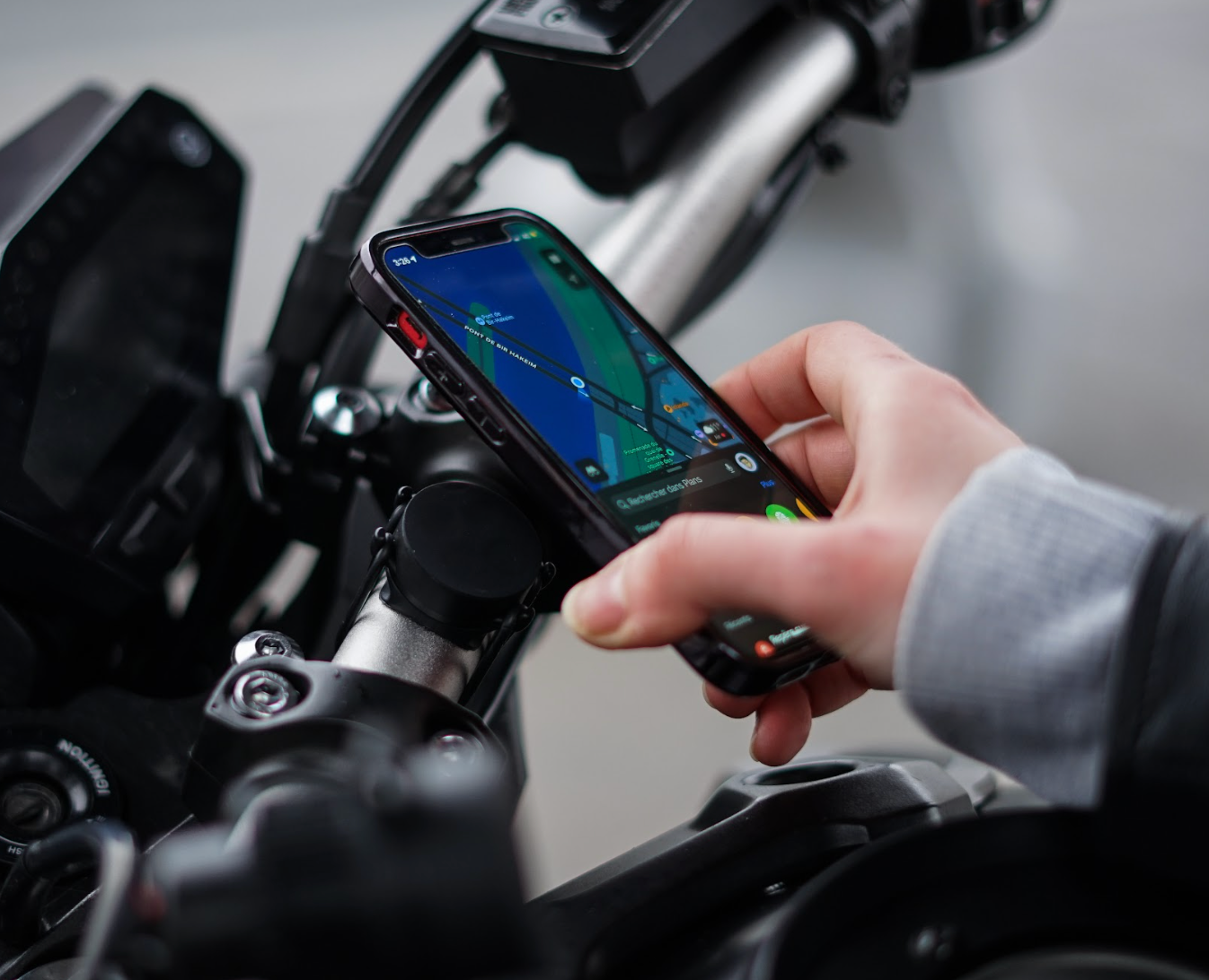 La première chose à faire est de vérifier la luminosité de votre écran et de bien orienter votre téléphone. Et même comme ça, cela peut ne pas suffire. Surtout à moto ou la position est plus basse qu’en vélo. Et c’est un peu normal, même sans pochette lorsqu’on utilise notre téléphone portable dans la rue en plein soleil par exemple, on ne voit pas grand-chose par moments.