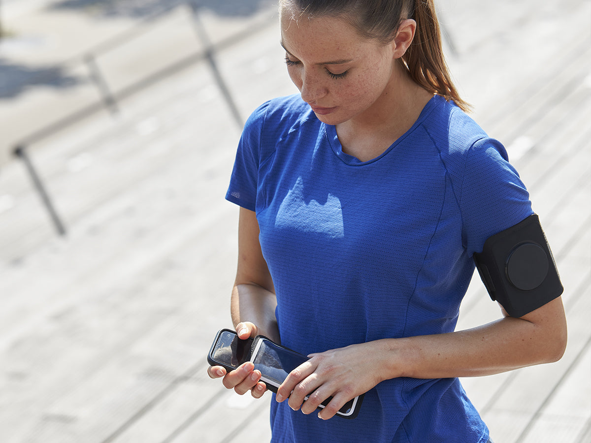 Le brassard de sport Shapeheart est le seul brassard de running qui permet d'accéder facilement à votre téléphone grâce à sa pochette magnétique détachable. Je clap, je remets... à l'infini.