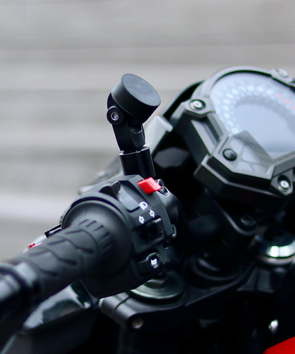 1. Positionnez le support au niveau du logement de votre ancien rétroviseur, si nécessaire, placez 1 à 3 rondelles d’ajustement sur la vis et serrez à la main le support au maximum.